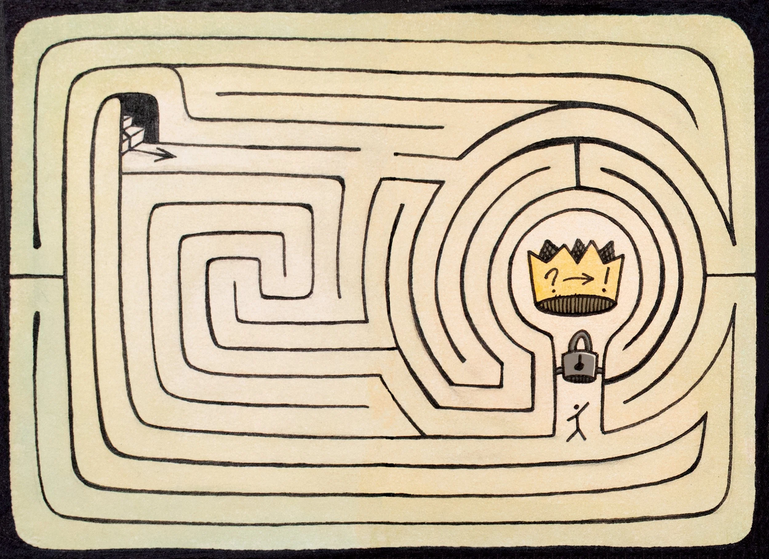 A multi-page sprawling maze, best experienced in physical form, available in orange or teal.